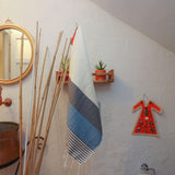• Beyza El Havlusu Mavi-Gri %100 pamuktan dokunmuştur.