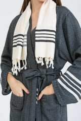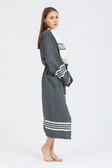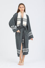 - Azra Pamuk Kadın Bornozu Siyah %100 pamuktan Türkiye'de dokunmuştur.