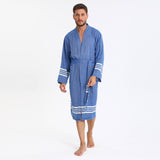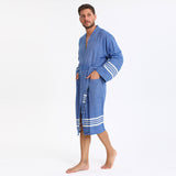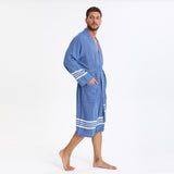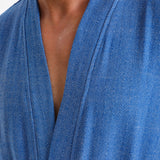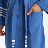 - Azra Erkek Bornozu Kraliyet Mavisi %100 pamuktan Türkiye'de dokunmuştur.