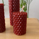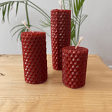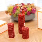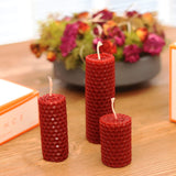 • 3'lü Vanilya Kokulu Balmumu Set Kırmızı setindeki mumlar 5x3 cm, 7x3cm ve 10x3cm ölçülerindedirler.