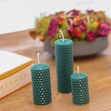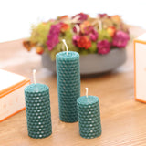 • 3'lü Vanilya Kokulu Balmumu Set Petrol setindeki mumlar  5x3 cm, 7x3cm ve 10x3cm ölçülerindedirler.