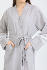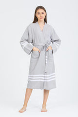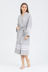 • Beli kuşaklı, cepli, pamuklu ve ekstra emici bornoz.
