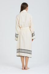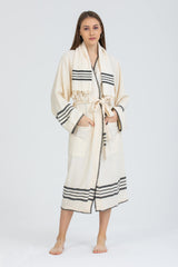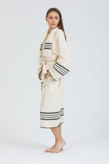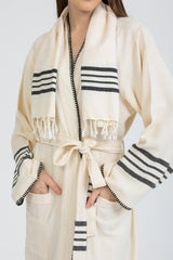 - Su Kadın Bornozu Beyaz-Siyah %100 pamuktan Türkiye'de dokunmuştur.