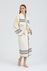 - Beli kuşaklı, cepli, pamuklu ve ekstra emici bornoz.