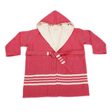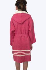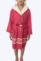 - Ada Kapüşonlu Çocuk Bornozu Fuşya %100 pamuktan Türkiye'de üretilmektedir.