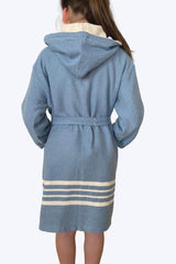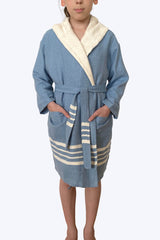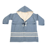 - Ada Kapüşonlu Çocuk Bornozu Havacı Mavi %100 pamuktan Türkiye'de üretilmektedir.