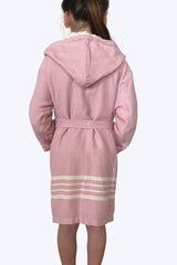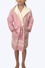 - Ada Kapüşonlu Çocuk Bornozu Pembe %100 pamuktan Türkiye'de üretilmektedir.