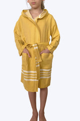 - Ayza Kapüşonlu Çocuk Bornozu Sarı %100 pamuk.