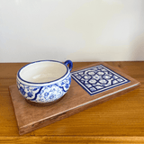 - El Yapımı Mavi Çini Sunumlukta Baba Nakkaş Üslubu deseni kullanılmıştır.